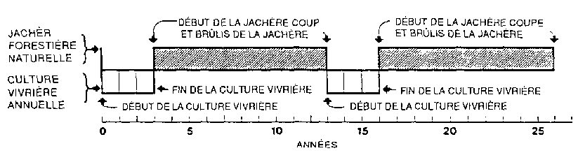L'agrosylviculture est un système d'utilisation des terres où l'on produit à la fois des cultures agricoles et des produits forestiers, soit simultanément soit séquentiellement. Cette forme d'utilisation de la terre représente une amélioration par rapport au système traditionnel de "culture itinérante", méthode de culture agricole cyclique dans laquelle les paysans abattent tout ou partie des arbres, les brûlent et font pousser des cultures agricoles pendant une ou plusieurs années avant de se déplacer sur un autre site et de répéter le processus, comme l'illustre la Figure 2.7.