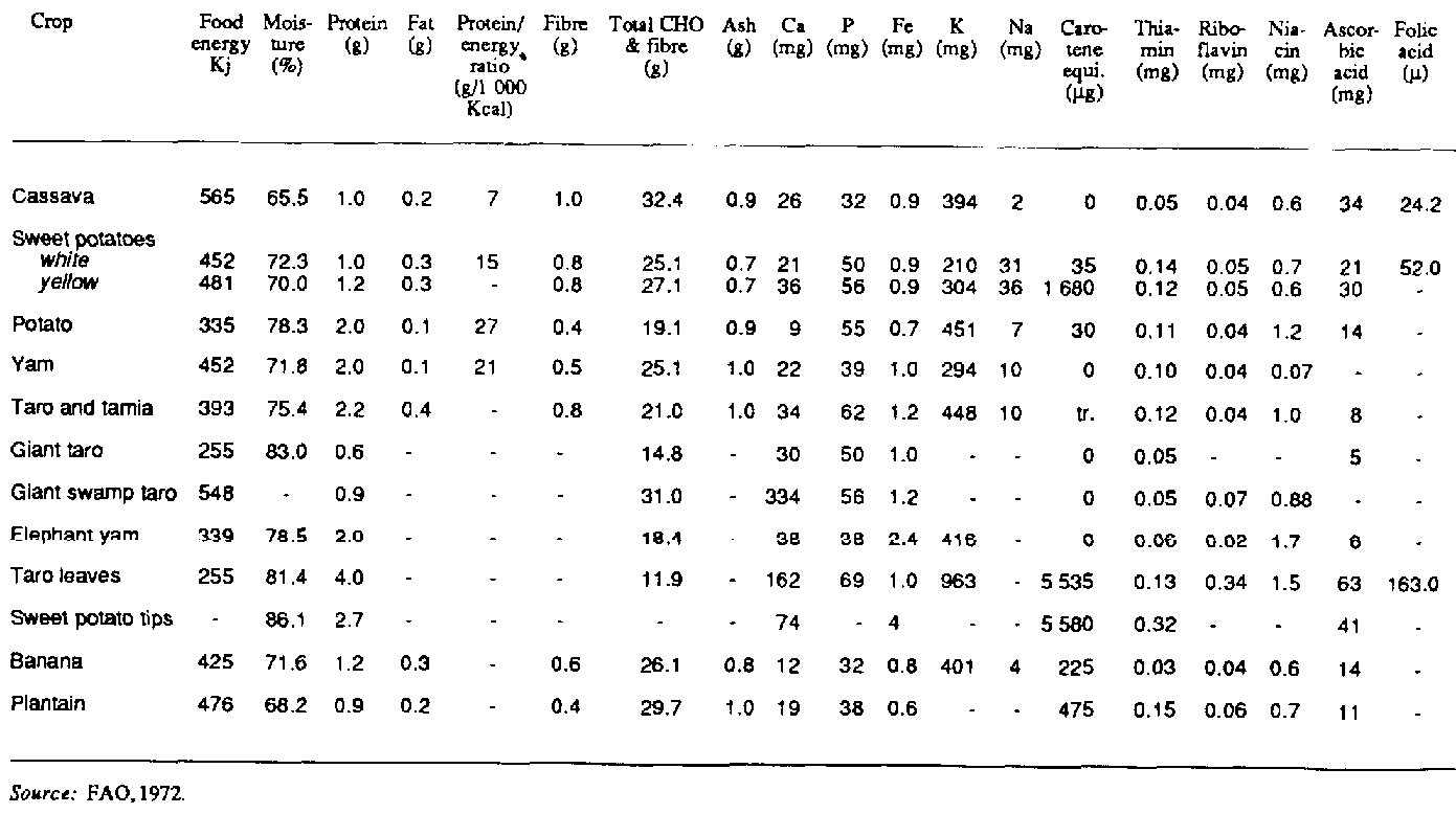 TABLE 4.4 - Nutritive values of tropical root crops (per 100 9 edible portion)
