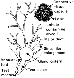 Lactation includes both milk secretion and storage in alveolar cells and ducts within the mammary gland, followed by milk ejection (let-down) and milk removal. Milk secretion is continuous and usually at a constant rate for at least 12 hours resulting in a gradual increase in internal udder pressure. Milk ejection is a neuro-hormonal reflex initiated by various stimuli at milking time. These stimuli, which reflect good husbandry practices, are either natural (inborn) or conditioned (learned by experience), including, for example, feeding and udder preparation. They cause the alveoli and small milk ducts to contract forcing milk towards the udder sinus. Once this has happened most, but not all, of the milk can be removed when external forces such as suckling or milking open the streak canal (teat duct) at the teat end, but at least 10% will be retained in the udder as residual milk.