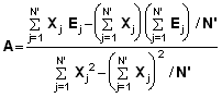 The fourth step is to compute a least squares line through the average row elevations in both field directions. The slope of the best fit line through the average X-direction elevation (Ej) is A and is found by: