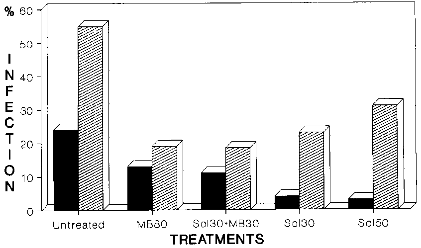 | Solarized for 30 days + Methyl bromide 30 g/sq.m |