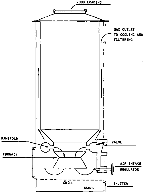 The downdraught gasifier makes it possible to use wood as fuel and produce a gas with sufficiently low tar content to operate an internal combustion engine. There are other means of handling the tar problem but these may create their own problems. Fox example, use of charcoal as fuel involves a loss of energy and increases the risk of depletion of wood resources. Use of cleaning systems after the gasifier involves difficult waste disposal problems.