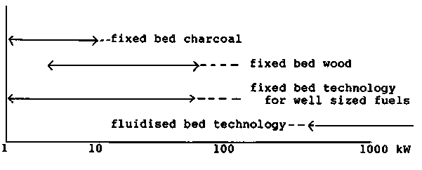 Fixed bed equipment fuelled by wood, charcoal and some types of agricultural wastes (maize cobs, coconut shells) is offered by a number of European and US manufacturers.