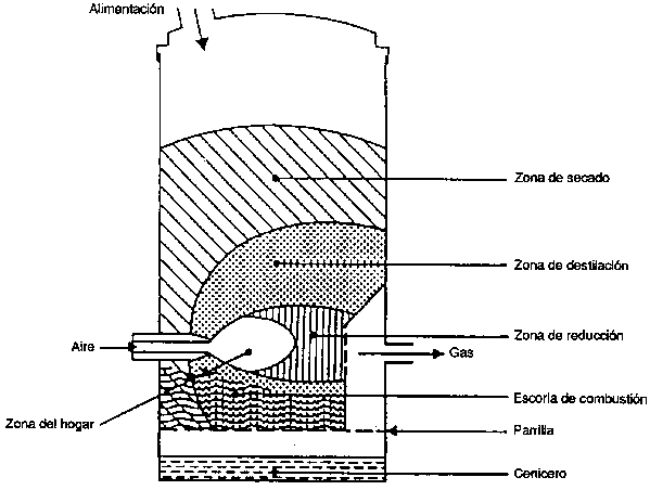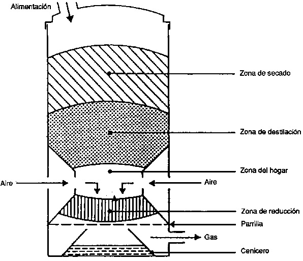 Figura 2.1. Esquema de un gasógeno de gas pobre