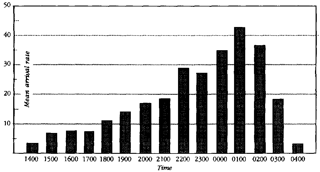 Figure 32 Mean arrival times for vehicles delivering to Birmingham wholesale market
