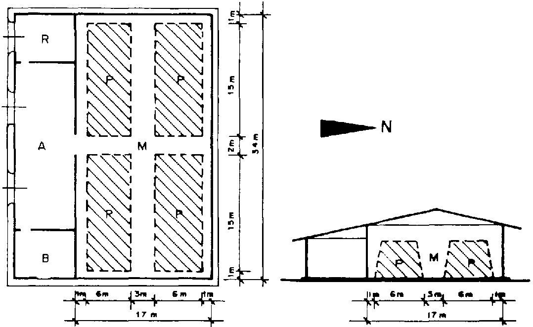 The width of the passages between the batches can vary from 2 to 4 metres, while the corridors between the walls and the batches must have a minimum width of 1 metre.