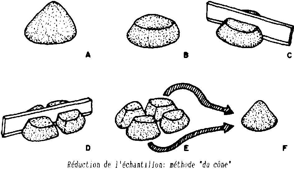 Elle permet d'obtenir des échantillons plus petits, par division en deux ou en quatre parties égales de l'échantillon global brassé et mis en tas sur une surface propre.