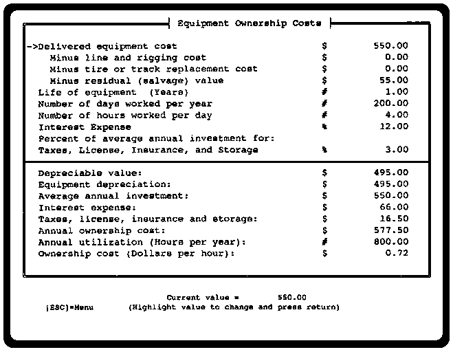 Branches to equipment ownership cost screen (Figure 6.4). |