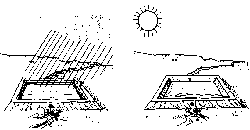 46 Then fill the hole with water again. Fill it to the top. Cover the hole with boards or leafy branches.