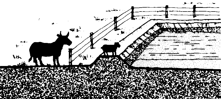 276 Do not let large animals such as cows, buffalo, horses or donkeys graze on the banks of your pond. They are too heavy and may break the banks down.