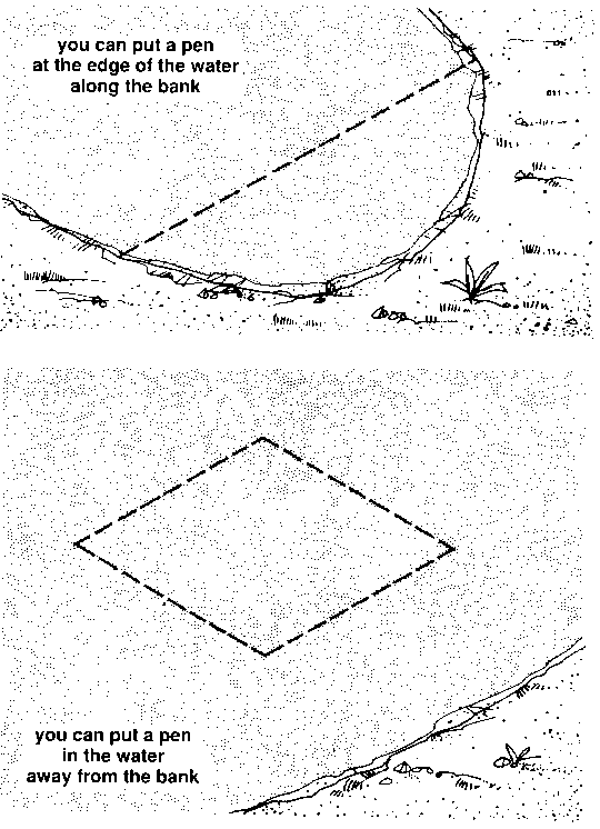 374 Try to find a place where you can build a pen using very few materials, such as the corner of a reservoir or an angle in a stream.