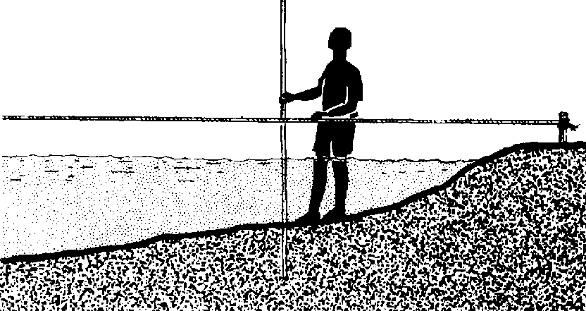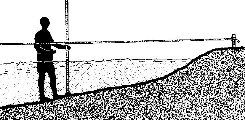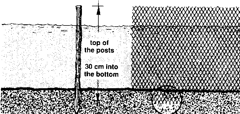 383 Check the bottom along the line with a long pole to see how far you will have to drive in the posts so that they will stand firmly.