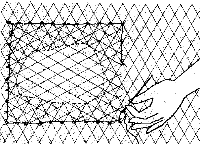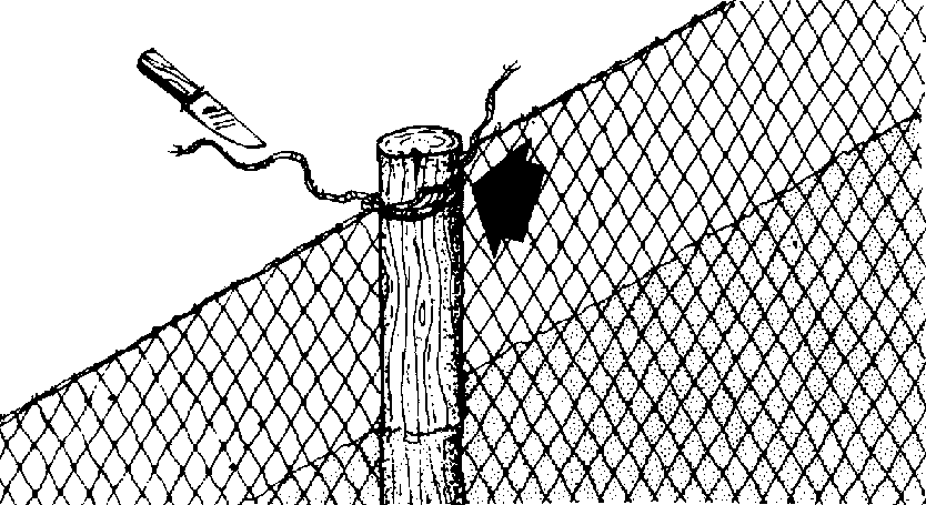 389 If you use fishing net for the fence tie the edge-line of the net to the top of the posts using strong cord.