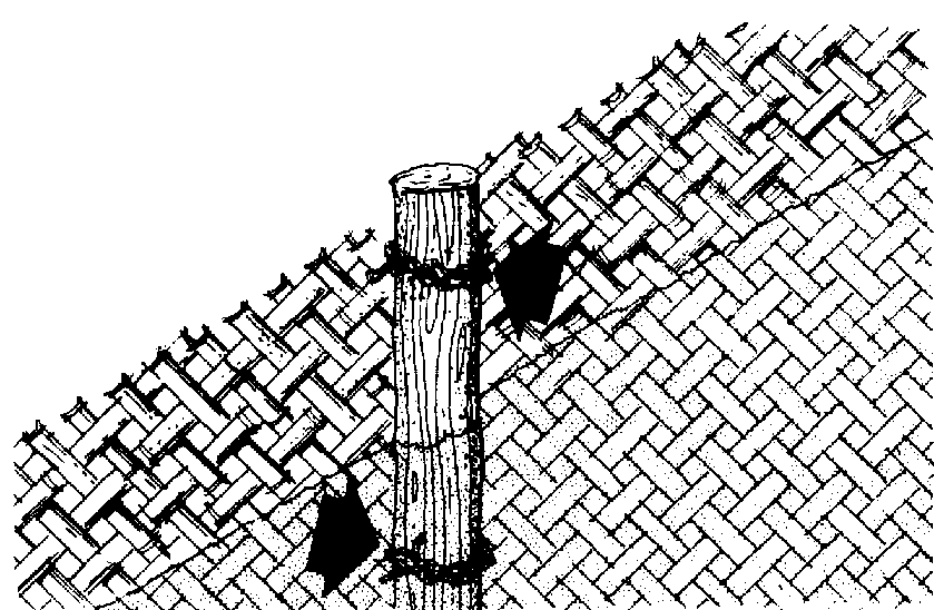 390 If you use woven material for the fence, tie it to the posts with strong cord. You can also use strong vines instead.