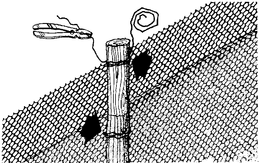 391 If you use plastic mesh for the fence, fasten it to the post with wire.
