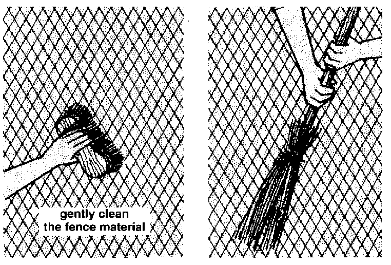 420 You can clean the fence of a pen using a brush or a broom. However, do it very gently so that you do not damage the fence material.