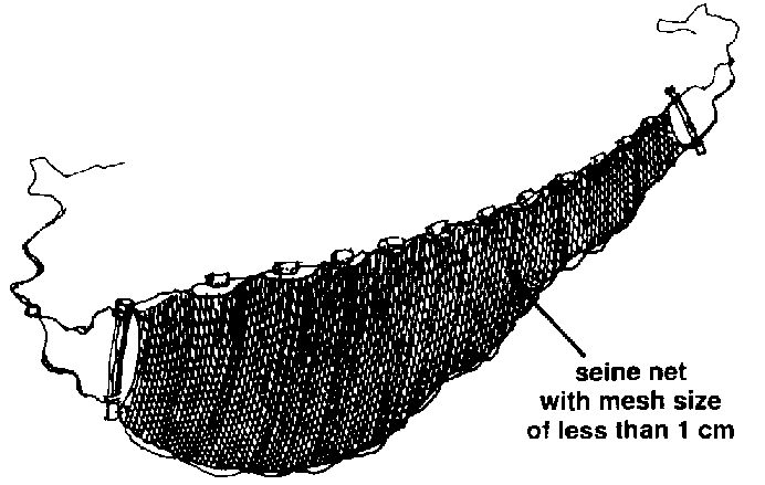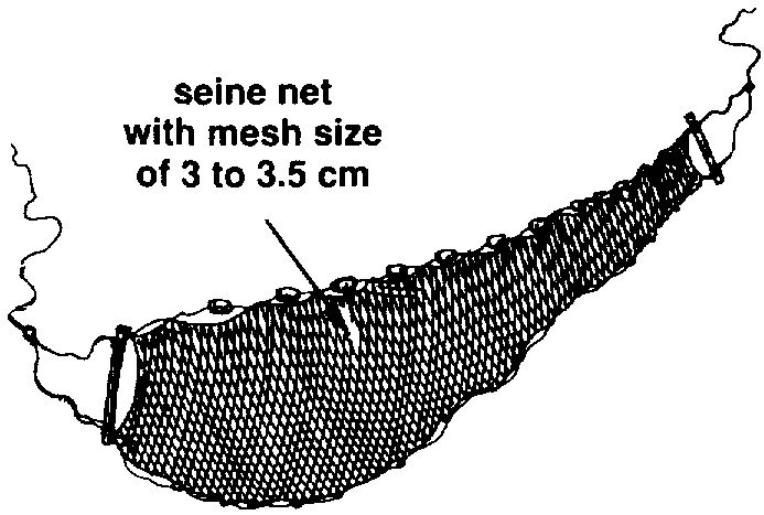 428 If you want to harvest all of the fish you can use a seine net with a fine mesh of less than 1 centimetre.