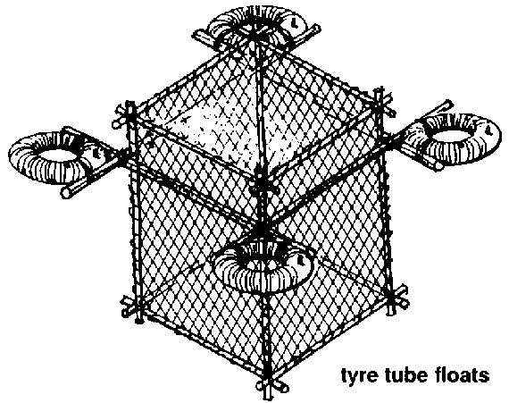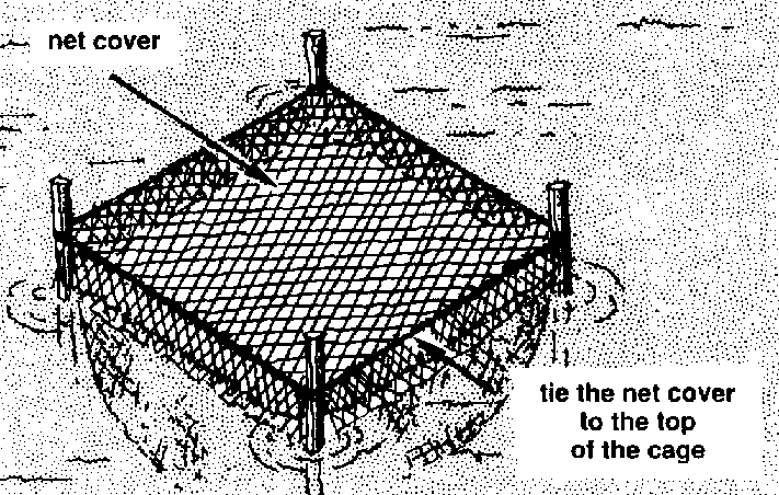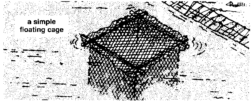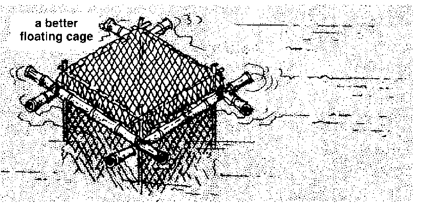 446 You can also build a simple cage by putting a square float on the water and hanging a piece of fish net inside.