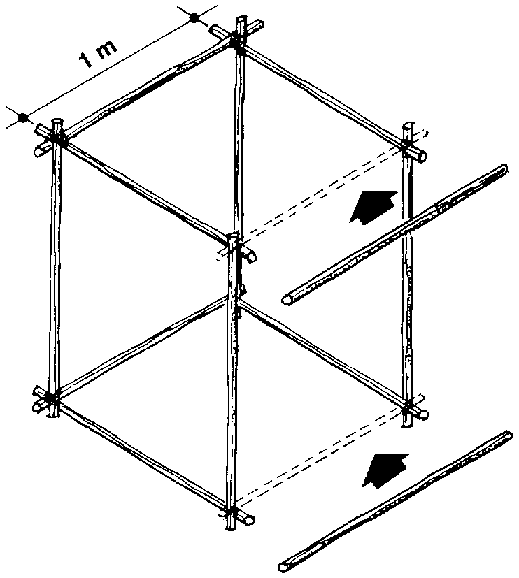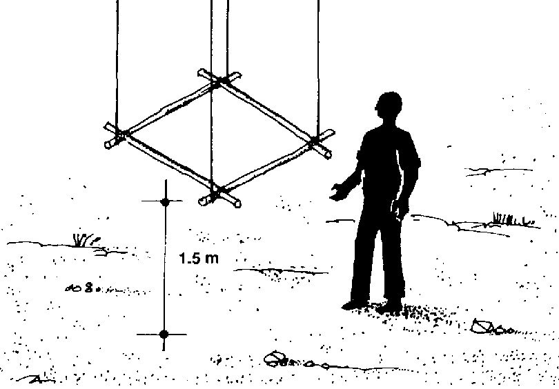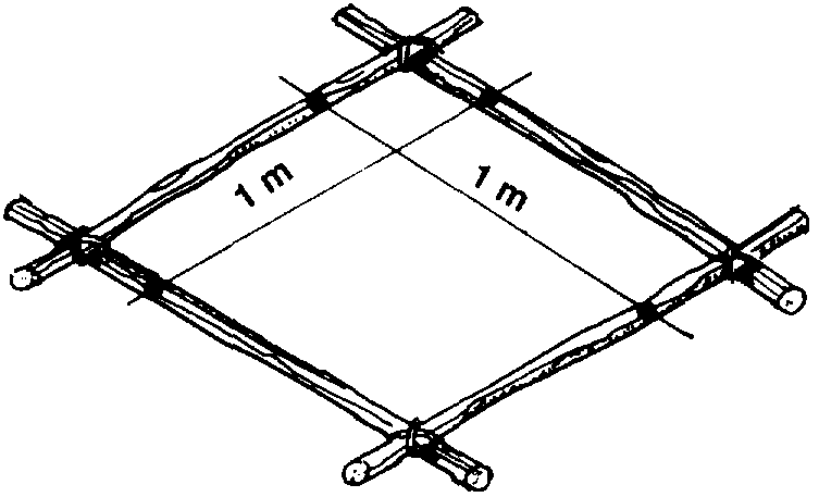 468 Using four more pieces of wood, tie the two sides together 1 metre apart as shown below.