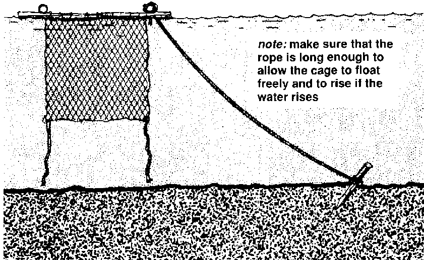 512 If you have a floating cage, make sure that the floats are tied firmly to the cage and that the cage is firmly tied in place so that it cannot float away.