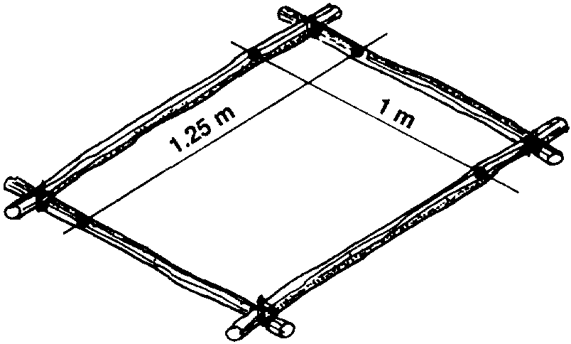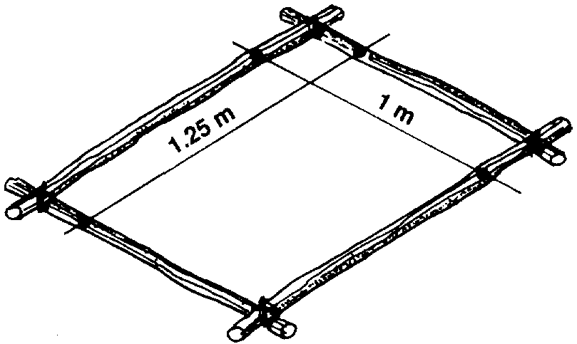 466 Tie four pieces of wood together using strong cord or rope to make one side of the frame; it should be about 1 by 1.25 metres
