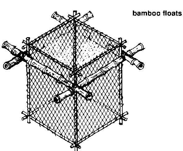 465 You can build a better floating cage by making a light frame of bamboo or straight pieces of wood cut from trees and covering it with either fishing net or plastic mesh.