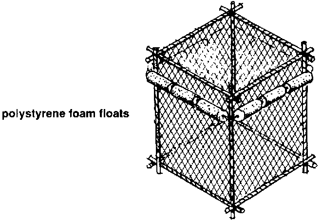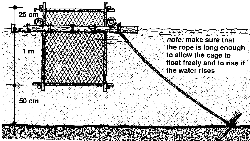 Note: If the cage does not float 25 centimetres above the water, tie on more floats until it does.