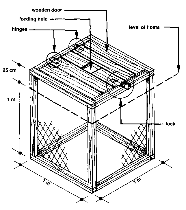 479 This kind of cage can also be built with a door that can be locked and with a special opening for feeding the fish.