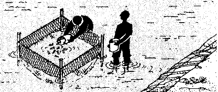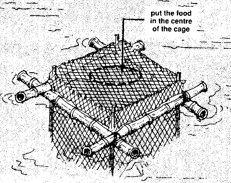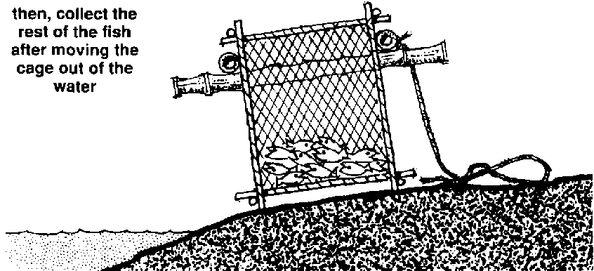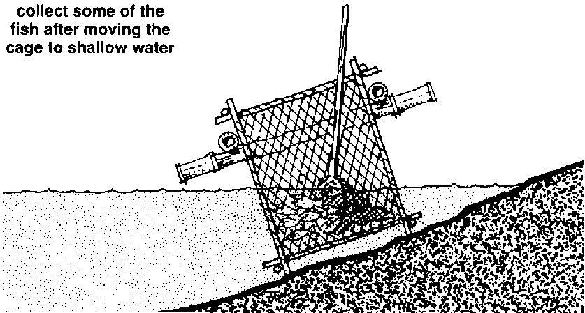 516 When you have collected most of the fish, you can lift the cage out of the water and collect the rest.