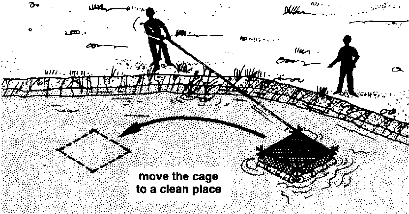 508 In addition, you must be sure that the openings in the cage material remain free of dirt and plants so that fresh water can flow into the cage.