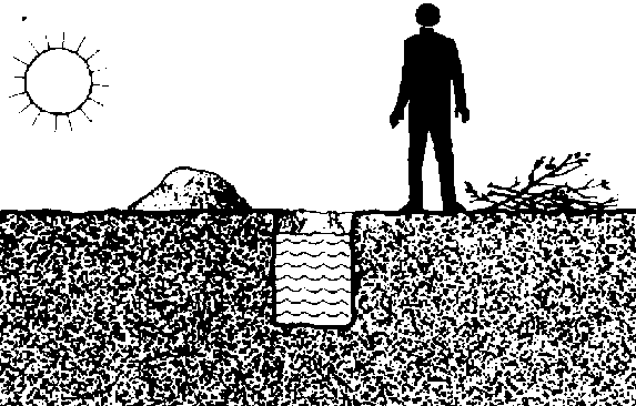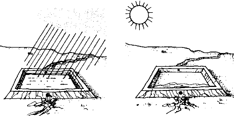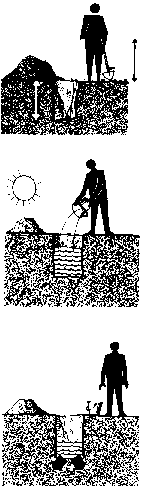 47 Le lendemain matin, si la plus grande partie de l'eau est encore dans le trou c'est que le sol retient suffisamment l'eau pour y creuser un étang.