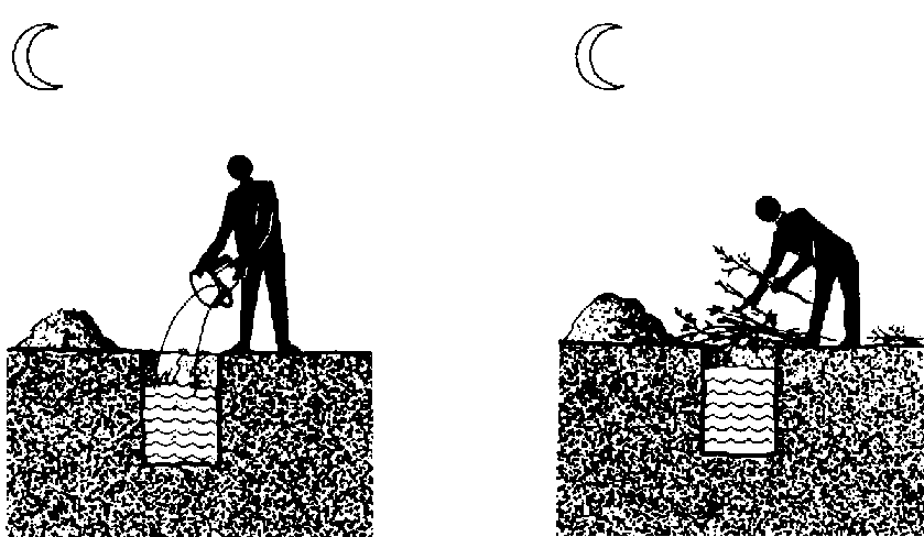 46 Remplissez-le alors à nouveau jusqu'au bord. Couvrez le trou avec des planches ou des branchages.