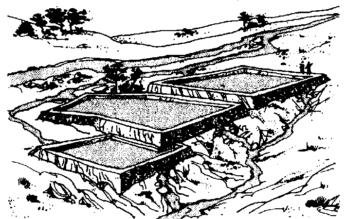 78 Si vous voulez un étang encore plus grand, vous pouvez en creuser un de 20 m x 30 m, de 20 m x 50 m ou même de 30 m x 50 m. La chaussée de la digue d'étangs de cette dimension devrait également avoir 1,50 m de large mais, comme ces étangs sont plus grands et plus profonds, et qu'ils contiennent beaucoup plus d'eau, la base des talus doit être plus solide que dans le cas d'un petit étang.