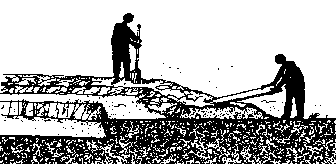 53 Enlevez une couche superficielle d'environ 20 cm de terre et mettez-la de côté. Elle vous servira plus tard pour recouvrir la chaussée et les talus extérieurs de la digue.