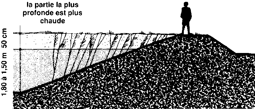 - de préférence de forme carrée ou rectangulaire de faible profondeur: 60 cm (extrémité haute) à 90 cm (extrémité basse) de profondeur