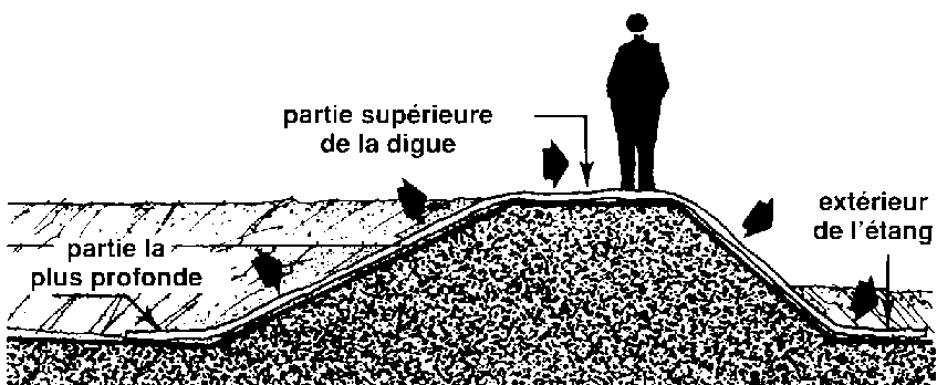 97 Le tuyau d'évacuation devra être placé au pied de la digue à l'extrémité basse de votre étang, dans sa partie la plus profonde.