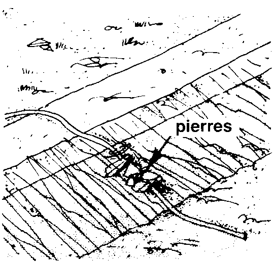 113 Vous pouvez construire un autre type d'écoulement pour vidanger plus rapidement un grand étang. Ce dispositif est installé dans la digue de l'étang du côté profond. Ce type d'écoulement est appelé moine. Quand l'étang est rempli le moine se trouve dans l'eau.