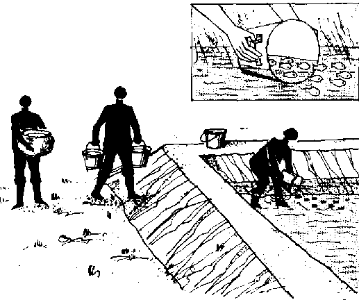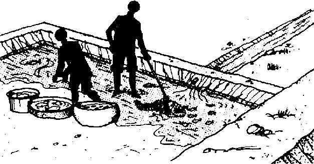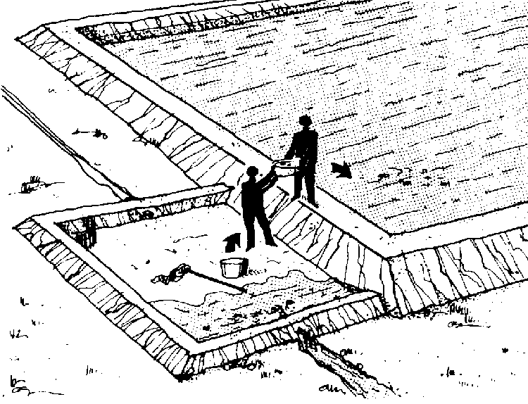 259 Attendez que le fond de l'alevinier soit sec, puis nettoyez et réparez le fond et la digue. Nous vous dirons plus loin comment faire (sections 353 à 355).