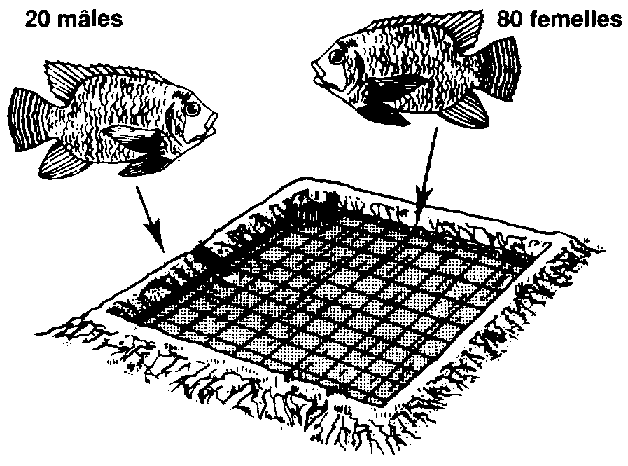 240 Si vous utilisez comme alevinier un étang de 10 m x 10 m et que vous éleviez des Tilapia nilotica, il faudra y mettre 20 mâles adultes et 80 femelles adultes.