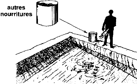 246 Pour que les poissons adultes de votre alevinier restent en bonne santé, il faut également leur donner d'autres nourritures.