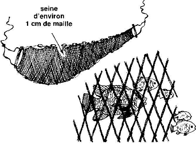 254 Le moyen le plus simple de sortir les alevins de l'eau est d'utiliser une seine. Si vous utilisez une seine à mailles de 1 cm environ, vous n'attraperez que les poissons qui ont au moins 5 cm. N'oubliez pas de remettre les poissons adultes dans l'alevinier.