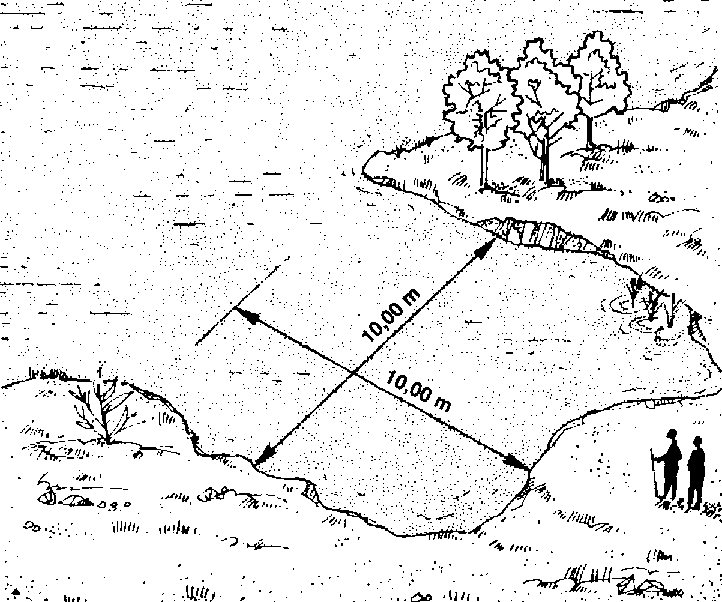 384 Mesurez la profondeur de l'eau tous les 2 mètres le long de la corde.