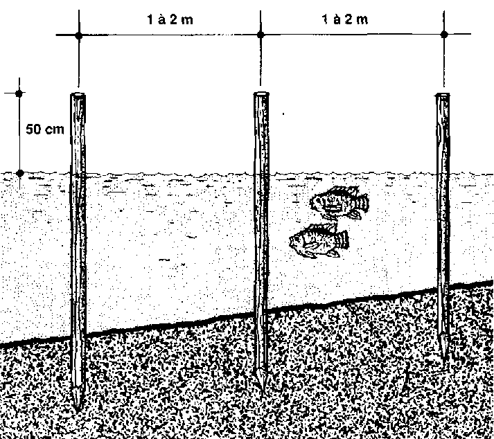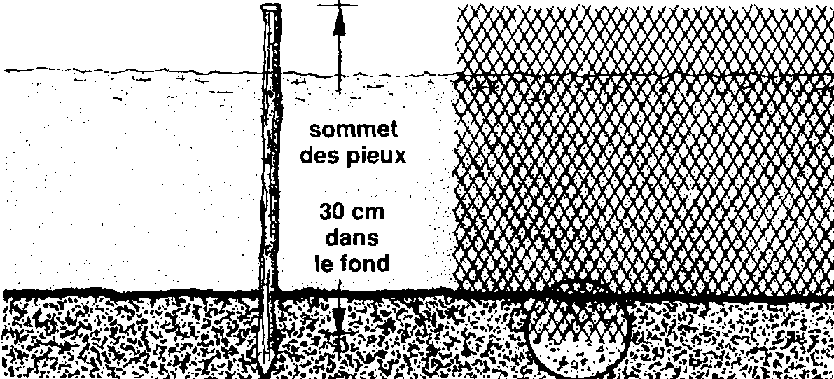 388 Si vous utilisez du filet de pêche, enfoncez les pieux à 2 mètres de distance.