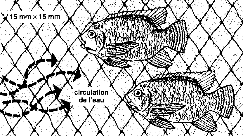 380 Les ouvertures du matériau de clôture doivent être assez réduites pour que les petits poissons ne puissent pas s'échapper.