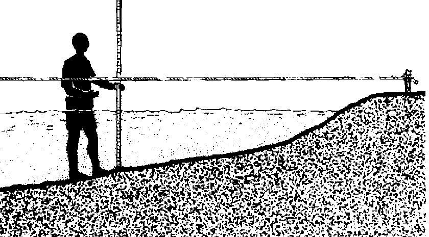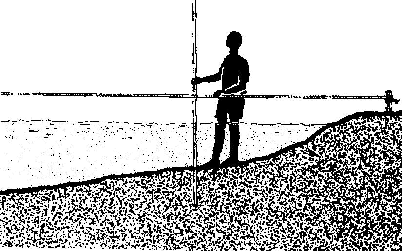 383 Contrôlez le fond tout le long de la corde à l'aide d'une perche pour voir à quelle profondeur vous devrez enfoncer les pieux pour qu'ils tiennent bien.