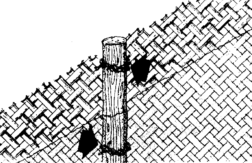 387 Si vous utilisez du treillis en bambou refondu, par exemple, ou un grillage en plastique, enfoncez les pieux à 1 mètre de distance.
