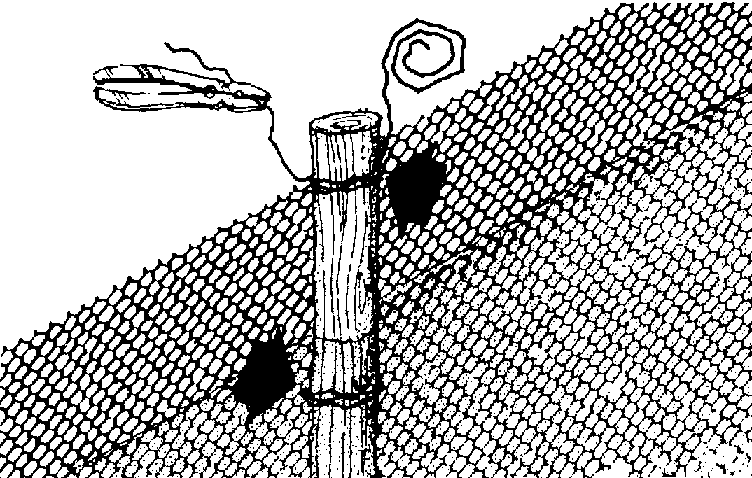 389 Si vous utilisez du filet de pêche pour la clôture, attachez la partie supérieure du filet au sommet des pieux à l'aide d'une ficelle solide.