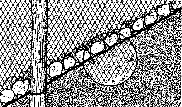 393 Vous pouvez enterrer la clôture en l'enfouissant dans le fond de l'enclos et en mettant une rangée de pierres de chaque côté pour la maintenir en place.