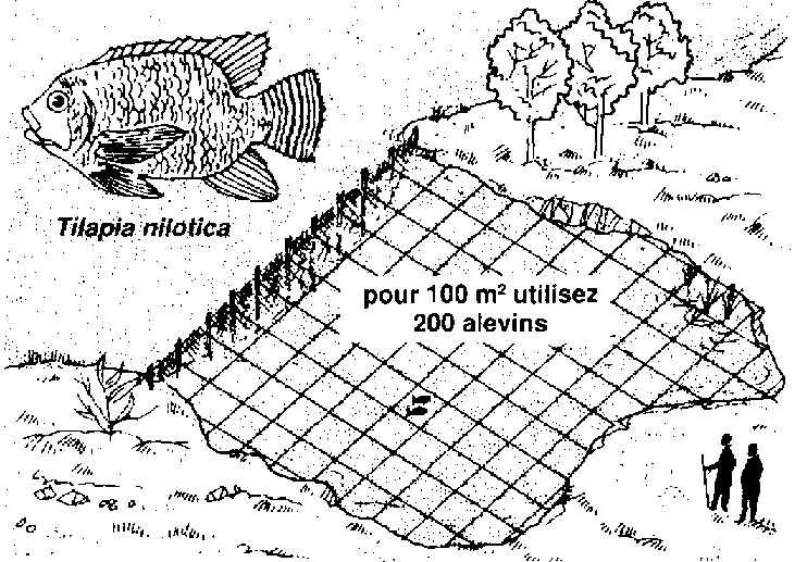 398 Si vous élevez Tilapia nilotica, il vous faudra mettre dans l'enclos deux alevins par mètre carré. Ainsi, si vous avez construit un petit enclos de 100 m², vous aurez besoin de 200 alevins.