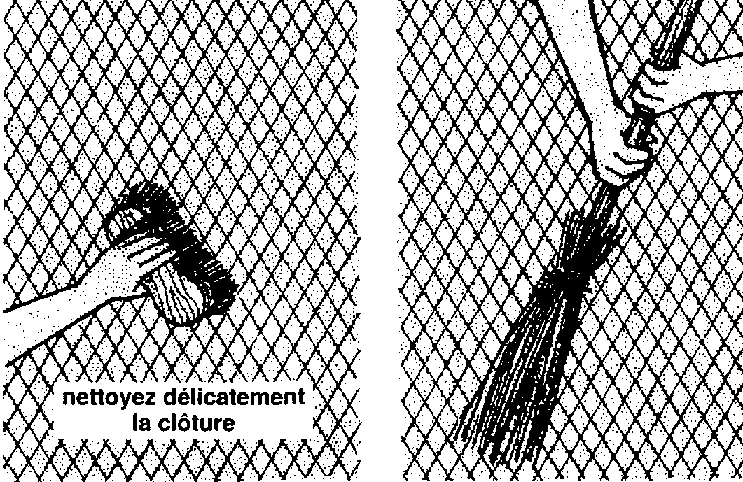 420 Vous pouvez nettoyer la clôture à l'aide d'une brosse ou d'un balai. Mais faites très doucement pour ne pas l'endommager.